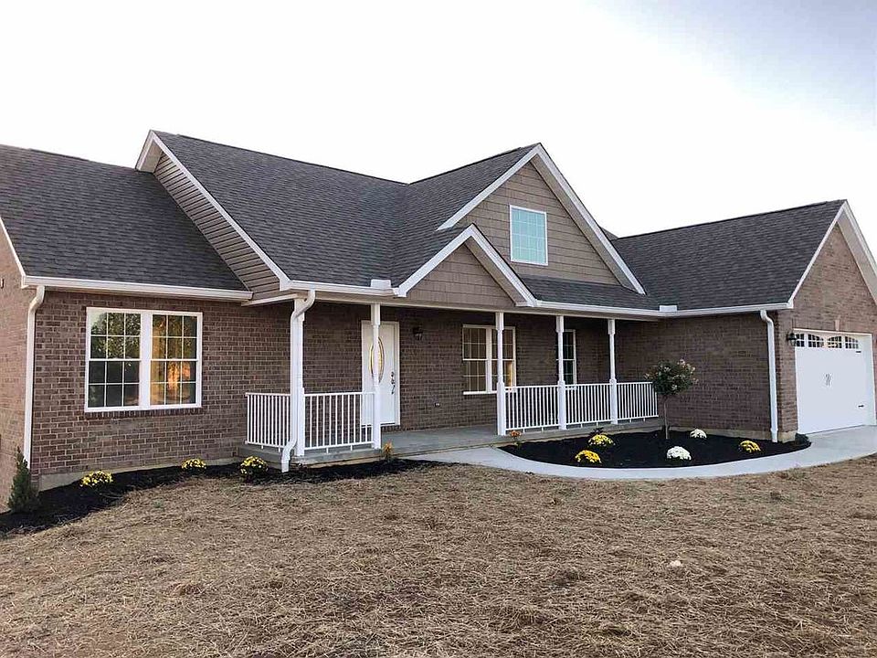 Beautiful new construction home only minutes from I-75 Dry Ridge*Quality built ranch on level 1 acre*3 bedroom, 2 full bath, 2 car garage*Full walkout basement*This quality built home offers open floor plan*Nice kitchen with stainless steel appliances, granite counter tops through out home, tile flooring in both baths and utility room*Low maintenance w/brick front & sides and vinyl siding on back*Large porch and wood view from deck*45 minutes to Cincy or Lexington*