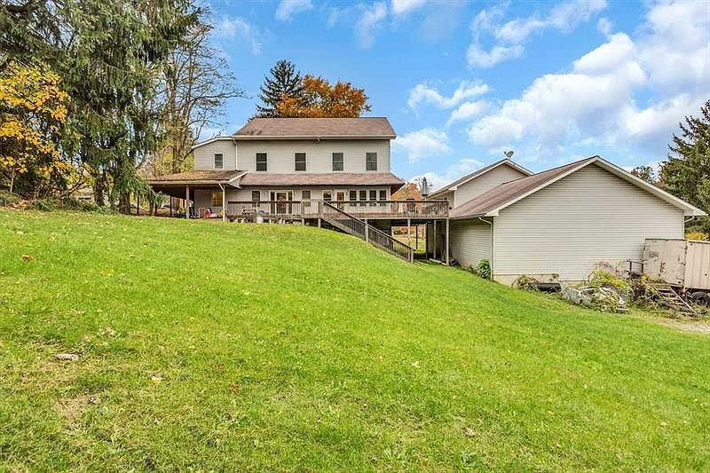 This super spacious home features 6 bedrooms and 5+ bathrooms! Open kitchen, dining and living areas to enjoy. Step out from the living area to the huge enclosed sunporch! Lower level is finished into several rooms and has walk out access. From the sunporch the large wrap around deck connects to the commercial garage and business part of the property. This building has 3200 sq ft and is heated. The garage has oversized garage doors to access the garage/shop/warehouse from the street. Fits larger vehicles. The upper portion of this building has office areas, restroom, heat and a/c. Run your business and work at home! This home has nice details and is very well constructed and maintained.There is coverded parking in front of the house also. Easy access to RT 18 and I76 PA Turnpike and RT 376.