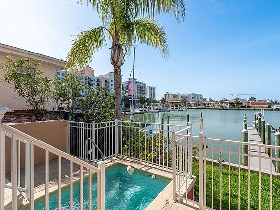 FANTASTIC OPPORTUNITY! Under Appraised Value! Experience the pinnacle of luxury coastal living in this furnished 3-bedroom, 2.5-bath waterfront townhome, ideally located in the heart of world-renowned Clearwater Beach. Blending sophistication with everyday comfort, this exceptional residence features a private boat slip, rooftop terrace, private dipping POOL. ELEVATOR and a rare oversized 2-car GARAGE with metallic epoxy floors, built-in storage, and additional washer/dryer hookups—a coveted combination in this highly desirable location. Step inside to discover bright, open living spaces adorned with stunning decor throughout and filled with natural light and plantation shutters. The kitchen features gorgeous stainless steel appliances, boasting a GAS stove, an illuminating glass breakfast bar with a dining area. Enjoy breathtaking views of the Intracoastal Waterway from three private BALCONIES and your expansive rooftop retreat, perfect for entertaining or relaxing in style. Tired of the sunshine, step back inside and enjoy the game or a movie in the dedicated media room. The owners suite is well sized with a spectacular ensuite bathroom. Bedroom two features a personal balcony and bedroom three has ample room with lots natural light. Boating enthusiasts will love the private BOAT SLIP, while beach lovers can enjoy a short stroll to the sugar-white sands of Clearwater Beach, consistently ranked the #1 BEACH in the U.S. Indulge in the ultimate Florida lifestyle with top-rated restaurants, boutique shopping, watersports, the Clearwater Marine Aquarium, and the brand-new Sound Amphitheater all nearby. Whether you're searching for a full-time residence, vacation retreat, or investment opportunity, this remarkable townhome offers luxury, location, and lifestyle all in one. Schedule your private tour today—paradise awaits! Additional highlights include: LOW HOA, Laundry hookup in garage and upstairs. Per permits: ROOF 2023, GENERATOR 2022, WINDOWS/DOORS 2020, HVAC 2020,WATER HEATER 2024