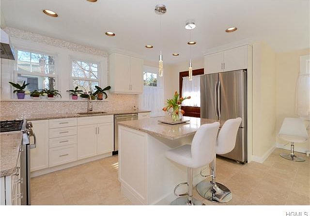 Old world charm meets the modern world. Bright, sunny and well maintained. Your jaw will drop as you enter the beautiful living room with its 11 foot ceilings. Gourmet eat in kitchen features Bosch appliances, quartz countertops and sea shell backsplash-door off this room leads to fenced in backyard with trees providing privacy. Formal dining room has 11' ceilings. Need another bedroom-developer included a door leading to the air space in the DR-architect planned to allow owner to add a 4th bedroom (estimated 10.5'x14' room). On the first floor there is a large sunroom used as an office and a den. Bedrooms are well sized. Master bedroom features California Closet designed closets and newly renovated bathroom. Walkout basement is huge-clean & bright with lots of storage. This home is perfect for living & entertaining. Central a/c. Short 10 minute walk to Scarsdale village & train station. School bus to Fox Meadow elementary and the Middle school. Quiet dead end street.