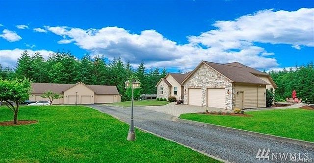 No expense spared in this custom built country rambler. On 5 nearly perfect acres with 2319 sf with immense attention to detail and high end finishes. Generous living and dining areas, gourmet kitchen w granite counters and custom cabinets. Master suite with radiant heat and walk in shower. Spacious second bedroom and office are ADA accessible. Huge garden area for growing your whole foods. 6 bay shop, hoist, plumbed for air and private bathroom. Take a peek at the 3D virtual tour!