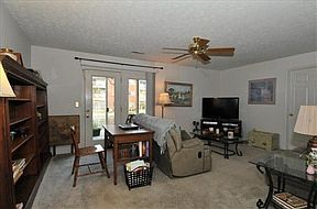 No step, maintenance-free living! Incredible lifestyle with community pool! Covered patio overlooks gorgeous lake/open-airy floor plan/neutral decor/all large rooms/fully equipped kitchen/split bedrooms/french doors/ceiling fans/breakfast bar/private master suite has 2 closets & attached bath/newer central air, water heater & microwave/additional storage in laundry room/detached garage #3 + more!