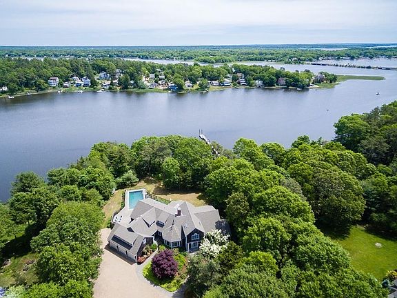 Introducing this gracious 5 bedroom quintessential Cape Cod home, located on the waterfront of the picturesque Weweantic River. Spectacular gourmet chef's kitchen, which includes custom cabinets, wine cooler, eat in area with wet bar and gleaming hardwood floors. The spacious living room offers a beautiful wood burning hearth, as a place to enjoy family and friends. The floor plan lends itself to entertaining in the formal dining room, or relaxing in the fireplaced den.The lovely master suite on the first floor fits many needs with large bath and walk in closets.Upstairs the beautifully designed staircase leads to a fabulous office and 4 large bedrooms w/ 2 more full baths.The serenity of this property, with scenic waterviews stretches out on a 1.71 acre parcel of manicured lawn and plantings. Outdoor features include a heated gunite pool,custom patio, and private dock. Town water and sewer, oil heat A/C and newer roof (2017). Truly a special home in lovely Marion!!