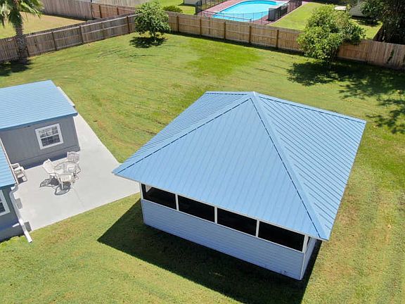 - Exterior: Yard Building, Fenced Back Yard, Hot Tub, Fenced Privacy, Pavilion/Gazebo, Patio Enclosed