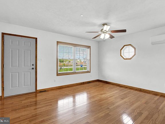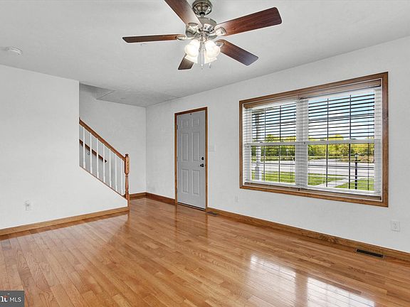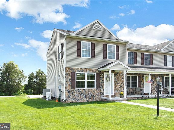 Move in ready! 2 bedroom 1.5 bath end unit townhome in lovely condition on .21 level acres on a cul-de-sac in Littlestown Area School District, Colonial Ridge Development. This home boasts 5 x 5 front covered porch, enlarged 26 x 14 rear patio with turtle/koi pond (also ideal for other water features or raised flower/garden bed), wood floors throughout most of the living spaces including both spacious bedrooms, all new RG Miller replacement windows (except hexagon), backup mini split hvac systems in the living room and primary bedroom, main level laundry room, kitchen / dining room combo with pantry and oversized 21 x 13 garage with electric opener, as well as off street parking. The lower level has been recently (2020) and very nicely finished into a wonderful bright family living space with a kitchenette (sink & refrigerator) /generously sized closets/ luxury plank vinyl flooring/egress window/ baseboard electric heat/no CAC. The unfinished square footage in the lower level 20 x 3 serves as a utility closet for the furnace/water heater 2022/manifold plumbing system/2021 sump pump/200 amp electric service/water softener. The house and all kitchen/laundry appliances conveys in as-is condition. So much to offer, come see!