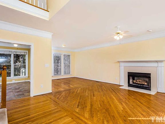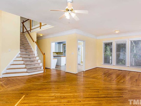 Stunning 4 bedroom 2.5 bath home on pie shaped Cul-De-Sac lot. Foyer opens to family room warmed by fireplace and dining room all with hardwood floors. Kitchen with tile floors, and breakfast area overlooking deck and private wooded backyard. Master suite with vaulted ceilings, walk in closet, master bath with dual sinks, whirlpool tub and separate shower. Other bedrooms w/ large closets Additional 4th bedroom or bonus room. Excellent location near shopping, walking trails. Near NC State! A must see!