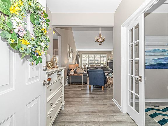 Enjoy the lifestyle of living in the premier gated golf community of River Club in Pawleys Island, where luxury living meets coastal charm! This beautiful renovated 3BR/2BA home is truly move in ready and is set on one of the largest lots on the street, featuring a spacious side yard and an enchanting view of the adjacent pond. The home's recent updates are evident throughout from roof to floors! Contemporary LVP flooring and new roof were recently installed in 2022. Brand new custom plantation shutters grace all windows and sliding doors, adding a touch of timeless elegance and privacy. Garage has clean epoxy floors and the entire house has been freshly painted. Popcorn textured ceilings were replaced with smooth finishes, complimented by designer chandeliers and lighting fixtures. Upon entering this lovely home, you are greeted by a spacious open-plan living area with vaulted ceilings bathed in natural light and elegance. The dining room, having been thoughtfully converted into a home office, is enclosed by stylish glass-paneled French doors, offering a quiet space for work or leisure. In the kitchen, style meets functionality with stainless steel appliances, classic white cabinets, and a stunning subway tile backsplash, laid in a sophisticated herringbone pattern. A dining room table is perfectly situated by the kitchen in addition to the cozy breakfast nook and modern countertop bar, allowing ample space for entertaining. This single-level home is also designed for comfort and ease, eliminating the need for stairs and creating a flowing, accessible space. The generously sized primary bedroom with ensuite bath and walk in closet, is located on the opposite end of the home from the two secondary bedrooms, creating privacy and space for kids and guests alike. Step outside and enjoy a paradise of natural beauty on your durable Trex deck. An electric awning with remote control offers shade and comfort while enjoying the tranquil surroundings. As a resident of this community, you'll also enjoy exclusive access to Litchfield by the Sea, a coveted amenity available to only a select few neighborhoods. This property is a rare find, combining modern updates, a fantastic community, and a location that's both serene and convenient.