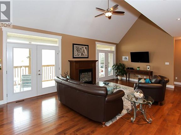 CUSTOM EXECUTIVE HOME FEATURING A LARGE TRIPLE GARAGE WITH THE ULTIMATE MAN CAVE ABOVE, AND A TWO STORY IN- LAW SUITE ATTACHED TO THE HOME. The main entrance features a large 20x20 foyer that leads to the open concept living kitchen area with cathedral ceilings and a walkway above. The room is highlighted by a propane fireplace and the garden doors lead out to the private covered porch. The large kitchen features granite countertops, a wall in pantry and vegetable sink in the island. Through the kitchen leads back to the Formal dining room at the front of the house with a large arched window and cathedral ceilings. The main floor also features two good size bedrooms. The master features a tray ceiling and 5pc ensuite. Through the mud room you will find an entrance to the bright in-law suite, that could be converted back into a double garage. The in-law suite features tile flooring, 12ft ceilings, a small kitchen and walk-in pantry with it's own private stair case leading to the master bedroom and 4pc bath. The second floor in the main house includes 2 good size bedrooms and a 4pc bath along with a walkway overlooking the main floor Living room. The basement is untouched. Outside find a large triple car garage 30 x 36, with a mini-split heat pump and loft with a bar and 3pc bath. Call Today for your Personal Showing! (id:1184)
