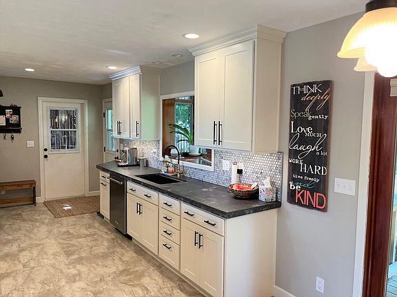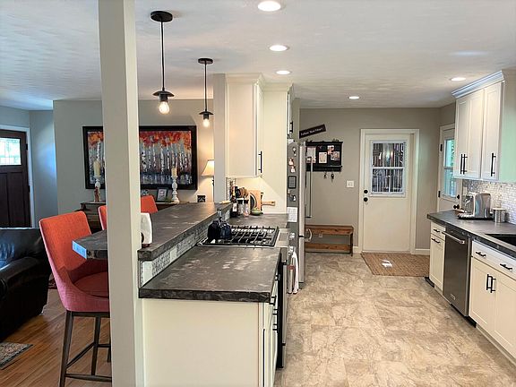 This TASTEFULLY REMODELED HOME shows pride of ownership and is in a very desirable neighborhood. The kitchen has custom concrete countertops, stainless steel appliances, and a garden window. The living room has a large bay window overlooking the cul-de-sac. The original hardwood floors flow through the main floor, including two bedrooms, a large bathroom, and an office. There is third bedroom in the basement, along with a finished bonus room, utility room/workshop, and a space for another bathroom or storage. French doors open to the private backyard, which has a shaded patio. The 2-car garage is attached.