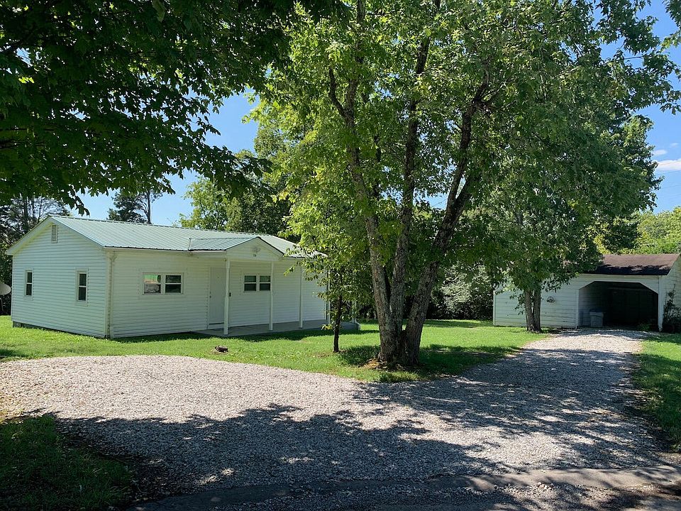 MULTIPLE OFFERS received, highest and best offers by 9/21/21 with 5pm expiration. Charming cottage style home in the ''country'' but so close to town. Cozy rancher with large living room and large updated kitchen. 2 bedrooms and 1 full bath (updated). Home has no carpet! Laminate flooring in LR and BRs, vinyl in kitchen & bath. Covered front porch. Big back yard and nice detached ''garage'' storage/workshop building. Sits at end of road so very private! Updated in 2013 and in great condition!