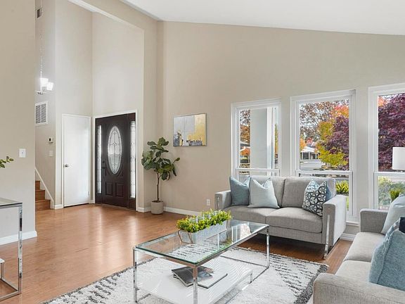 Perfectly situated in highly desired San Ramon neighborhood. This stunning home features 4 bedrooms 3 bathrooms with 2,042+- Sq Ft of living space. The lower level offers a spacious eat-in kitchen with granite countertops, large living room with soaring ceilings and an abundance of natural light, dining area with vaulted ceilings, cozy family room with a fireplace and sliding glass doors leading to the backyard, bedroom & full bathroom, and laundry area. The upper level provides a sun-drenched primary suite with vaulted ceilings, a split-level bedroom with room for office space and additional storage, another bedroom, and full bathroom. The private backyard oasis offers mature trees, and patio area, making it an ideal setting for relaxing od to entertain. Close proximity to The City Center at Bishop Ranch, restaurants, shopping, and award-winning schools. Welcome Home!