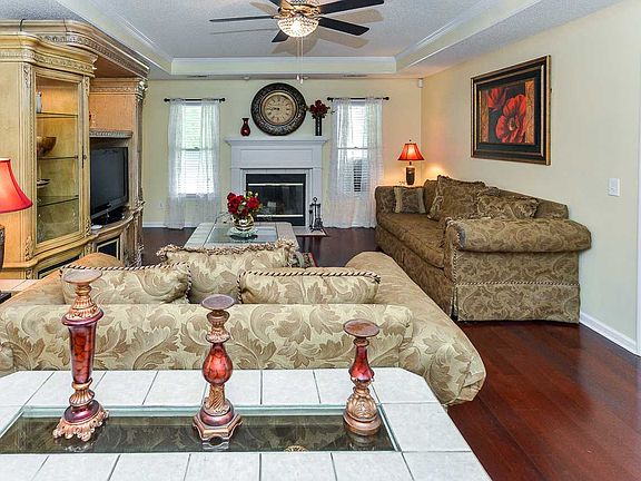 - LIVING ROOM DESC: Fireplace, Crown Mold, Wood Floor, Ceiling Fan, Trey