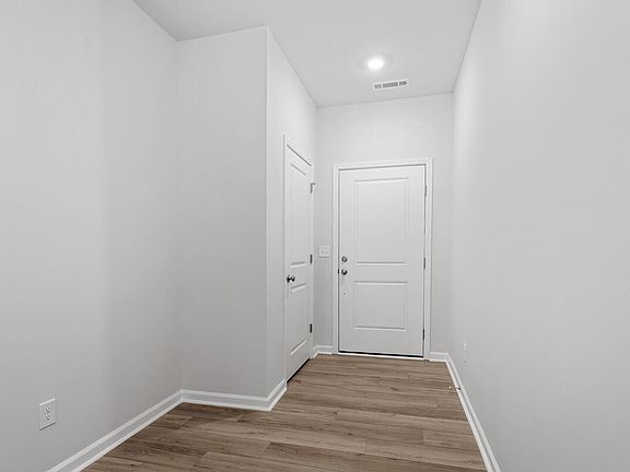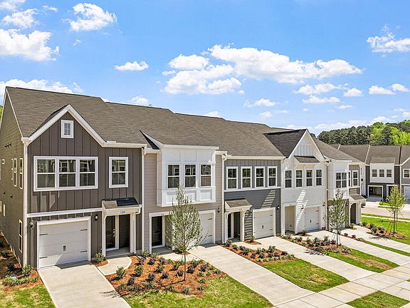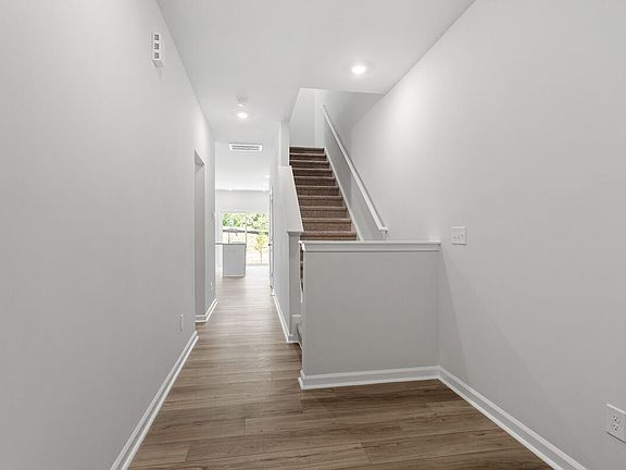 This stunning end-unit townhome offers 3 bedrooms, 2.5 baths, and a thoughtfully designed first floor with 9-ft ceilings that create an open, airy atmosphere. The bright white kitchen is perfectly positioned next to large windows and a sliding glass door, allowing natural light and fresh air to flow in while you cook and entertain. The kitchen features a spacious sink and ample counter space, making meal prep a breeze. Step outside to your private patio, the perfect spot for outdoor relaxation. Upstairs, the primary suite is a true retreat, complete with a large walk-in closet, dual vanities, and a luxurious garden tub with shower walls—combining both style and function. Additional storage space under the stairs provides a convenient solution for organizing bins and items, meaning you won't have to worry about storing things in the attic. Set within a vibrant, lifestyle-focused community, this home offers access to fantastic resort-style amenities, including scenic walking trails, a refreshing pool, and an expansive dog park for your furry friends. Enjoy the perfect blend of comfort, convenience, and modern living in this desirable end-unit townhome.