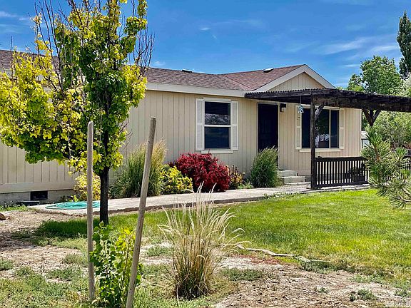 Located minutes from downtown Lovelock, NV.. This 3 bedroom 2 bath home is all electric and has AC throughout the home. The floors are laminate, carpet, and sheet vinyl. The Primaries room has two large walk-in closets, double sinks, and tub/shower combo. The home has beautiful warm colors to match anyone's decor. There is a large covered patio with stamped concrete. The backyard is manual watering and the front yard is on sprinklers and drip system. The seller has fully fenced a large part of the backyard, . There is a 2 car detached garage and a carport. This property is on city water. The home allows you to be minutes from downtown, but also give you country style living. This home is priced to sell. Give us a call for more details.