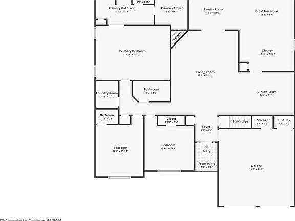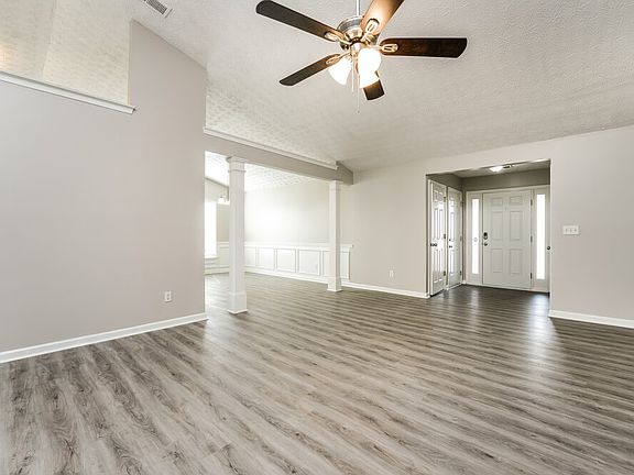This 2,042-square-foot rental home in Covington, GA features three bedrooms and two full bathrooms. A bonus room over the garage provides extra living space. You'll love the wood-look flooring and the high-angled ceiling in the living room. A wall with a large opening and two windows separates the space from the extra family room. Partial walls throughout the main living areas add definition and maintain an open feel. The formal dining area boasts white wainscoting, pillar accents, and an elegant light fixture. A breakfast nook next to the kitchen gives you even more dining space. The kitchen's white cabinetry and sleek white counters create a beautiful ambiance. The main bedroom delights you with a high ceiling and its own bathroom. Call to tour today!