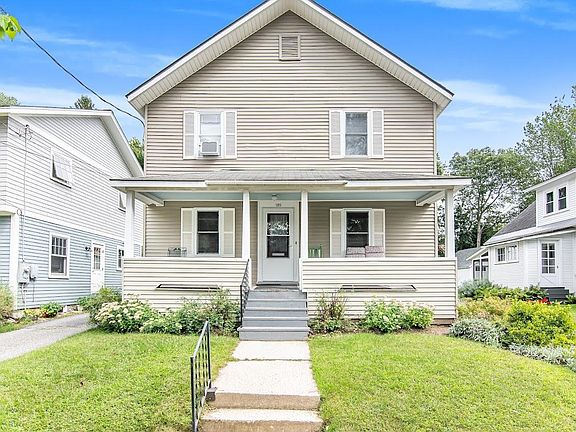 Located in the sought after Five Sisters neighborhood sits this lovingly maintained home with all the original charm you might expect. Outside, you'll find a classic covered front porch plus a private, enclosed porch or back entry. The grounds are beautifully kept with flower beds and plenty of room for gardening, barbecues, pets and family gatherings. Inside, you'll find a bright and airy eat-in kitchen, a den with built-ins that could also be used as a formal dining area. There's a front living room with double wide opening to another parlor or sitting area. The trim is wide natural woodwork, the stairs are original and you'll find hardwood flooring under the carpets! Three bedrooms upstairs and pulldown stairs to attic space and storage. The basement has a family room and unfinished laundry area with sink and a large workshop area.