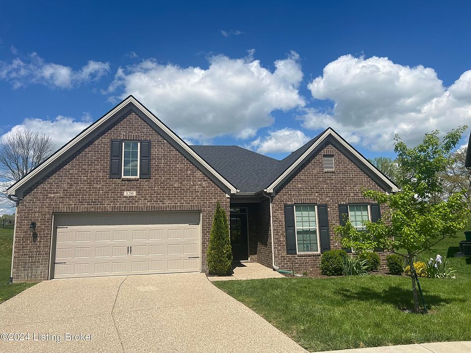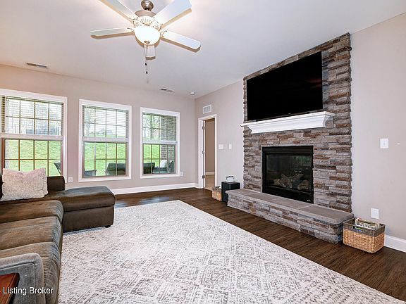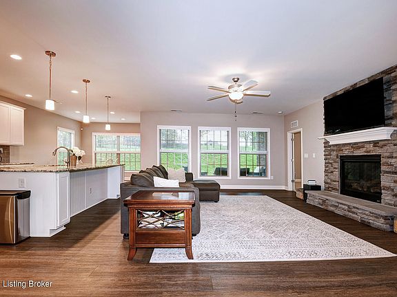 Pristine 4 year young all brick home offering approx. 2600 sf of relaxing, sophisticated living. Features 3-4 Beds, 2.5 Baths and open living spaces. Huge eat-in Kitchen, gorgeous granite, stainless appliances, eat-in area bathed in natural light, and large island with seating. Great Room features stone fireplace, lots of windows, and large Dining Room. King-size Primary boasts a luxury bath and large Walk-in Closet. Two additional downstairs bedrooms share a 2nd Full Bath. Off the kitchen sits a pantry, mud space with built-in storage bench, Laundry Room with folding counter, and 2 Car Garage. Huge upstairs Flex Space is currently used as Guest/Family/Rec Room and features a closet and half bath. Huge walk-in attic allows for even more storage. Premium lot offers more space and privacy for relaxation. Conveniently located minutes from Middletown and Outlet Shoppes of the Bluegrass.