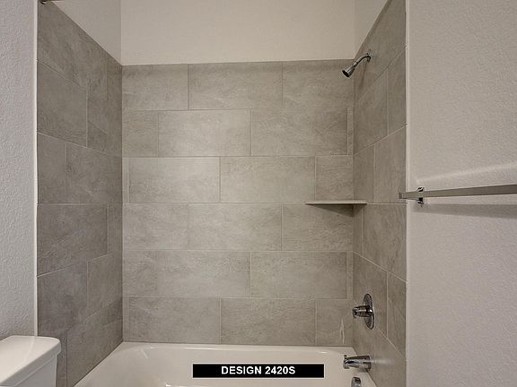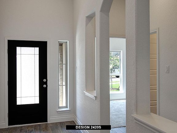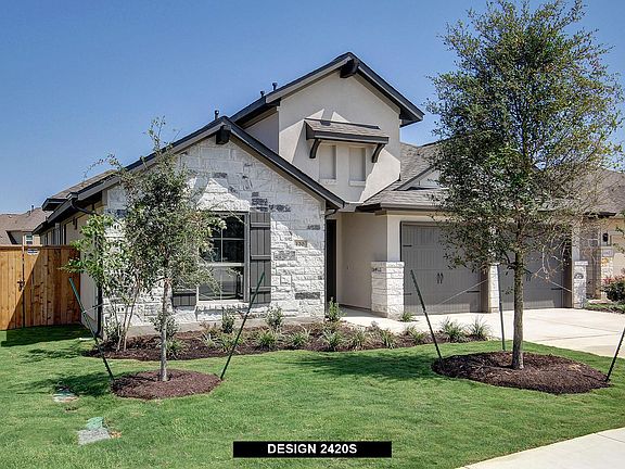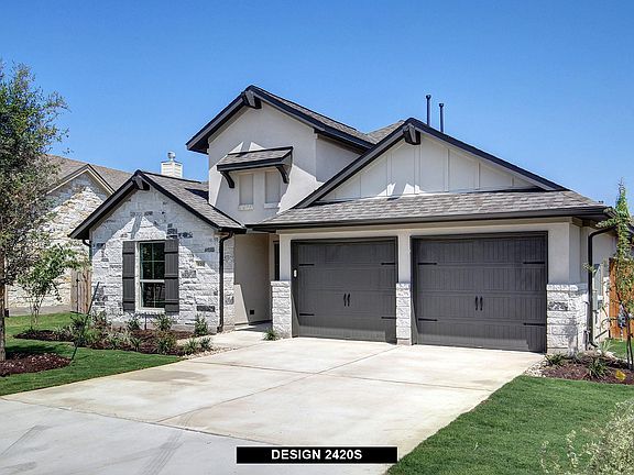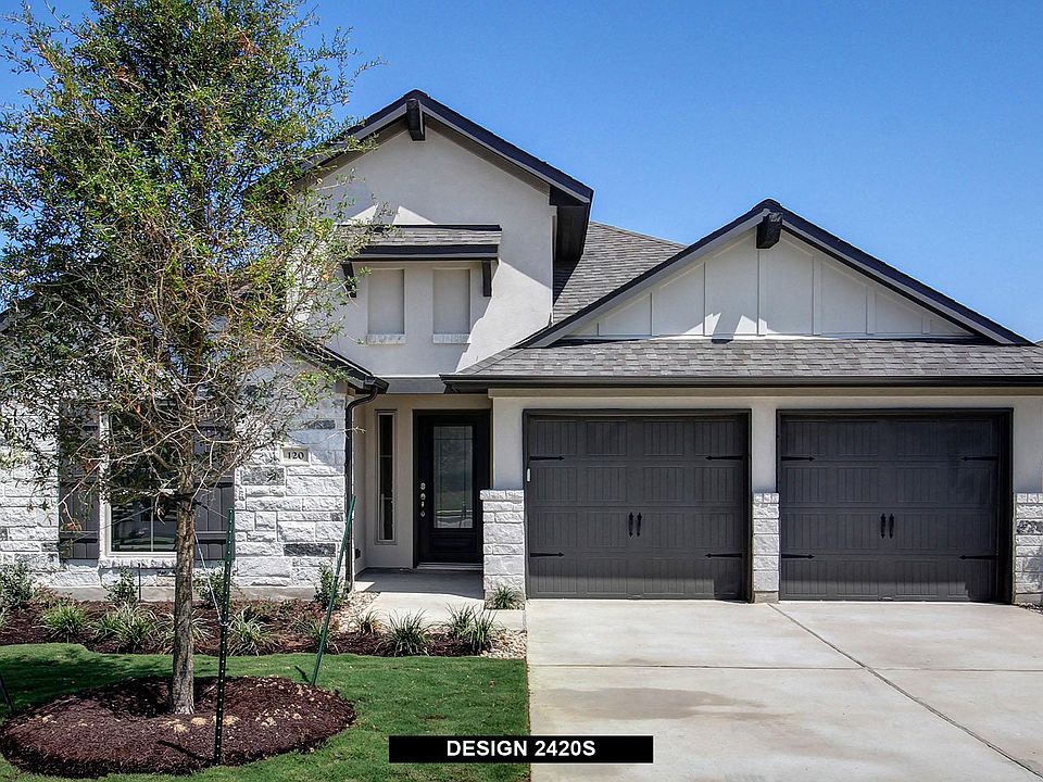 Extended entry with 12-foot ceiling. Library with French doors and ceramic tile floor. Open family room with a wall of windows and ceramic tile floor opens to morning area. Kitchen features a large island with built-in seating space and a walk-in pantry. Private master suite. Master bath features double doors with dual sinks, garden tub, a separate glass-enclosed shower and a large walk-in closet. Secondary bedrooms and a guest suite with a full bath and walk-in closet complete this generous one-story design. Mud room. Covered backyard patio. Three-car garage.