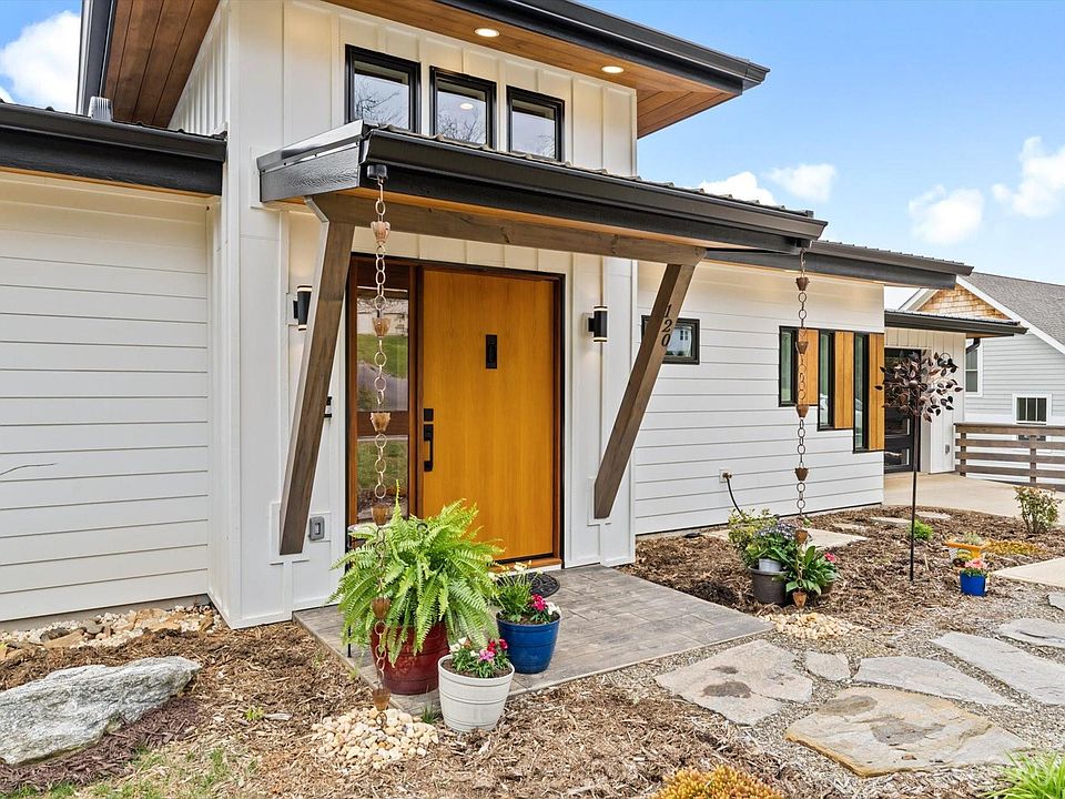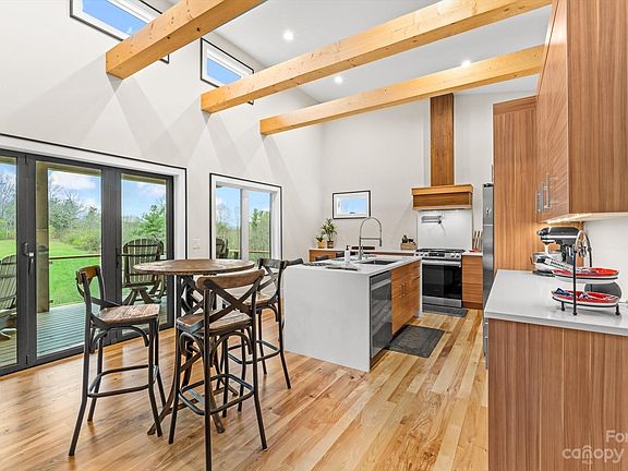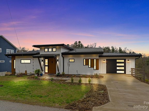 This modern home in Weaverville is a stunning and unique property that was custom built in 2022. It offers a rare opportunity to experience country living while still being conveniently close to amenities, just half a mile from Main Street. Situated at the end of a road on over half an acre of land, this home provides privacy and tranquility.