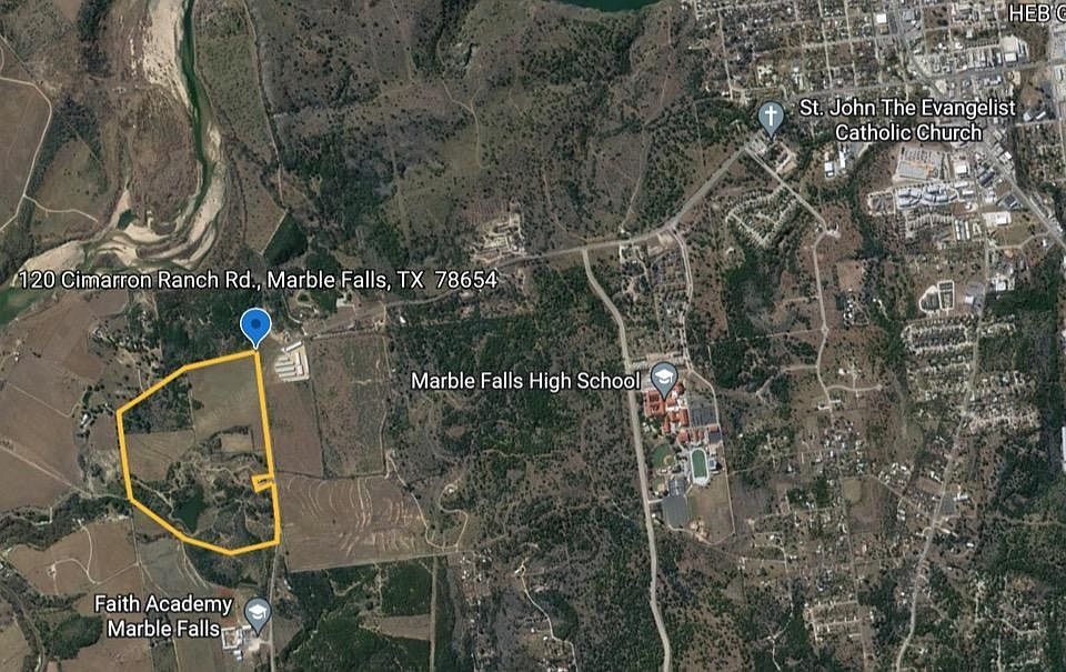 Outstanding unrestricted potential. 140+ acres located at the intersection of FM 1431 and Cimarron Ranch Road, west of Faith Academy. Just outside the Marble Falls City Limits, partly in the ETJ, with over ¾ mile of Highway 1431 frontage and nearly a mile of Cimarron Ranch Road frontage. The property has it all, beautiful hardwood trees, large and small. Stocked spring fed tanks and a small lake that is still holding water today. City water is run to the property and is available for further distribution. Owner financing is negotiable.