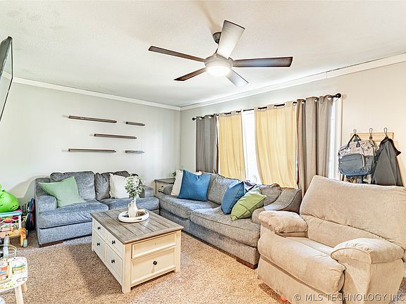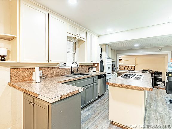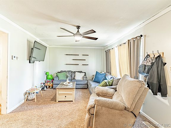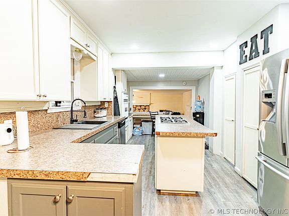 As you enter into the home you will enter into the living area, just off the living room is 2 bedrooms and full bathroom. You can continue through the living room and into the dining that offers plenty of space to host. The kitchen is just off the dining and offers lots of cabinet space and counter space. From the dining area, you can also access the master bedroom and bathroom. The master bedroom is spacious and has beautiful barn doors. It also has access to the back yard. Off of the kitchen is a den or second living area, as you wrap around the den area it will come to the laundry / utility room. In the front of the home, offers a 2 car carport and extra space for parking. The back yard features and patio area that is setup for you to host this summer's cook outs. It also has a hot tub and spacious fully fenced back yard. Large storage building just past the double gates.