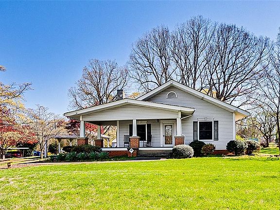Charming older home with lots of character! Home has been redone inside and out. Vinyl siding w/replacement windows and architectural shingles, 3/bedrooms, 2/baths, kitchen w/custom hickory cabinets (Appliances remain in kitchen (house was plumbed for dishwasher but not installed), dining room w/pine cabinets, sitting room w/original hardwood floors, living room w/natural gas rock fireplace and original hardwoods, Large primary bedroom w/2 closets. All three bedrooms w/closets and carpet. Mud room, laundry room. Electrical updates, New 10 x 16 back porch and rocking chair front porch. New Gas Hot Water Heater, Detached 36 x 24 Wired garage w/roll up door, 15 x 24 wired garage w/roll up door, Mower Shed, Custom built detached carport (Rooster weathervane does not convey). Owners have been in the home over 30 years. Selling As Is. Buyer and agent to verify info.