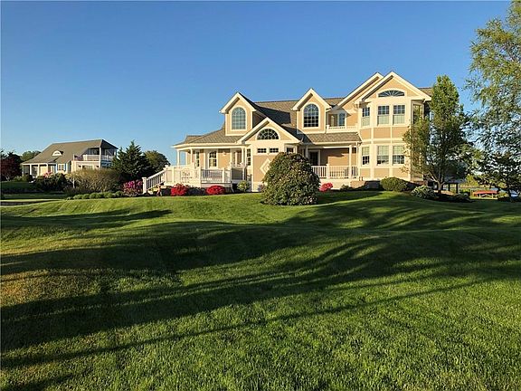 Welcome to Foster Cove, a small enclave of homes in a private neighborhood. Association docking by lottery is located off Wildflower Road or walk onto your own private platform dock from your back yard and enjoy all water sports including your paddle board and kayak or float to a remote part of East Beach by boat for fun in the sun.The original house was built in 1988 but oh my, how things have changed! A sizable addition became a spacious gourmet kitchen, the cozy den was also added with lovely embellished fireplace and expansive glass to highlight the gorgeous water views. The design showcases impressive wooden beams in the vaulted cathedral ceiling over a Great Room. Do you have large family gatherings of groups of friends and company? This home has plenty of room to grow into including 1000 sf finished space in lower level including exercise room, summer kitchen, mud room, utilities and storage. Numerous upper level decks provide escape to enjoy summertime no matter whether it's sunrise or sunset. Wander the beautifully manicured yard adding to the enjoyment of peace and quiet while overlooking the cove and wildlife sanctuary beyond. Platform dock easily removable in winter. Owned mooring conveys. 15' Boston Whaler Super Sport with 60 HP motor and dinghy remain as do the exercise equipment in lower level. Some furniture included if desired.
