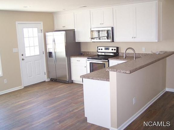 NEW HOME FINISHED WITH THREE BR, LARGE MASTER BR WITH BIG WALK IN SHOWER, LARGE WALK IN CLOSET, TRAY CEILING AND EXTRA STORAGE. BR ARE SPLIT. 12 ML. LAMINATED WOOD FLOORS THROUGHOUT EXCEPT TWO BR WHICH HAVE CARPET. BATHS ARE CERAMIC. KIT WITH EATING BAR, BUILT IN STOVE D.W.,AND REF. HALL BATH HAS TUB AND SHOWER. LARGE WOOD DECK ON BACK, CONCRETE DRIVE INTO DOUBLE GARAGE WITH AUTOMATIC DOORS.