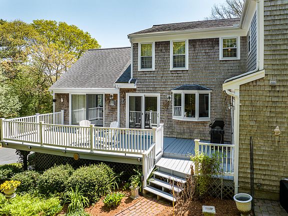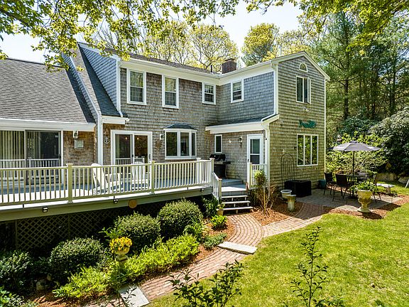 Pride of ownership is evident throughout this home. It has been meticulously maintained & is sited on a beautifully landscaped & private lot. The first-floor design is one that is affords spacious living. There are 2 living areas on each side of the kitchen. A front to back living room with a gas fireplace & separate private office divided by French doors. The private office has its own entrance & overlooks the gorgeous backyard. The generous size great room is light & bright with cathedral ceilings & gleaming hardwood floors. The kitchen is the heart of the home the central focal point, beautiful white cabinets & newer SS appliances. The dining room has the size for nice gatherings all year and the large deck off the kitchen is ready for those summer cookouts or relaxing after a day at the beach. The 2nd level has 3 large bedrooms. The en-suite bath is spacious offering a large walk-in tile shower & a jacuzzi soaking tub. Need more space? The basement is finished & is perfect for a ''man cave'' ''she-place' or a playroom. The home is private w/ conservation land that has walking / hiking trails. This home waiting for its next story, be in for the summer.