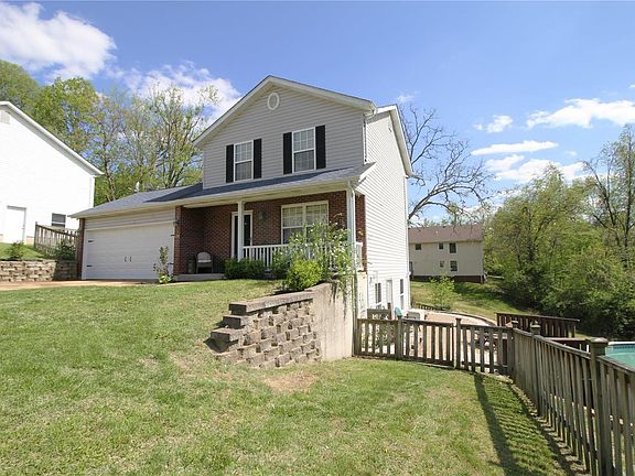 No HOA fees here! Feel the love and pride in ownership from the minute you pull into the driveway. The stunning landscaping and charming covered front porch will welcome your friends and family when they enter this beautiful 2 story home! The main level is where you will find the living room, kitchen and half bath. The sliding glass doors will take you out onto the deck where you have plenty of room for that BBQ grill you've always wanted! Upstairs are the 3 bedrooms and one of the most adorable bathrooms you will ever see! Downstairs, you will find the family room, 2nd full bathroom, laundry room and hidden storage! Walk out of the basement and relax on the patio by the pool or under the deck in the shade. Enjoy being at the end of the cul-de-sac where your property backs up to the woods for additional privacy! The back yard is also completely fenced in to keep your fur babies safe! This location puts you minutes from Crystal City High School, shopping, restaurants, parks and more!