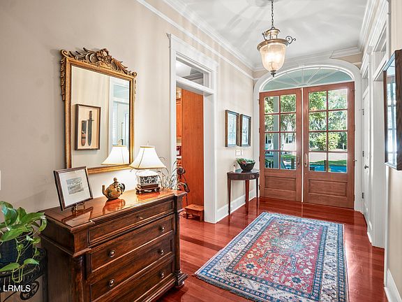 Step through a wide, welcoming double foyer into a spacious, light-filled interior. The gourmet kitchen features custom cherry cabinetry, premium countertops, and high-end stainless steel appliances—perfect for entertaining or preparing family meals. The open-concept floor plan flows effortlessly into the dining and living areas, creating a warm and inviting atmosphere. Upstairs and downstairs bedroom options offer flexibility for families, guests, or a home office setup. The primary suite boasts a luxurious en-suite bath and generous closet space. Enjoy coastal breezes from your screened-in porch or relax in the beautifully landscaped backyard with mature trees and room to garden.
