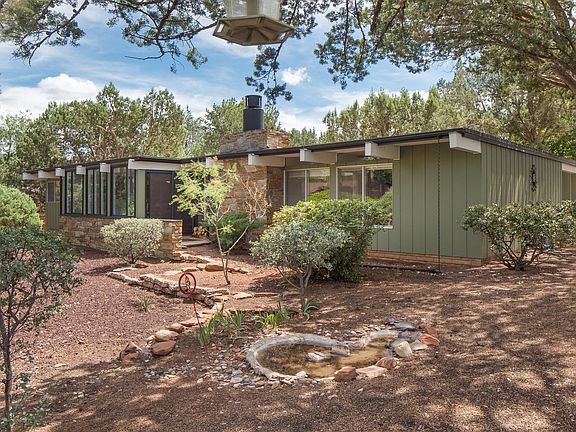 A Sedona vintage home for those who love retro! Built in '70,the home has style & class & a bit of a cabin feel especially in the 2BRs.Ceilings are T&G throughout w/beams in living area continuing outside over the covered walkways.The exterior is wood siding w/appealing rock face on fireplace & some low walls.The tiled foyer introduces use of & appreciation for light in this older home.The Great Room,w/rock fireplace & hearth as a central focal point,includes dining area.The kitchen includes family room & computer desk space,breakfast bar & is adjacent to an open space perfect for office,hobby rm, or art studio.An enclosed AZ Room, w/lots of windows + views of Thunder Mt, has a myriad of uses.There are two BRs each with private bath.A one-car detached garage, 2 garden sheds, a partially fenced backyard w/vegetable garden & lots of mature trees. This property has been pre-inspected to prepare it for marketing.<br/><br/>Brokered And Advertised By: Russ Lyon Sotheby's Intl Rlty<br/>Listing Agent: Claudia Ault