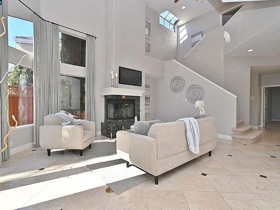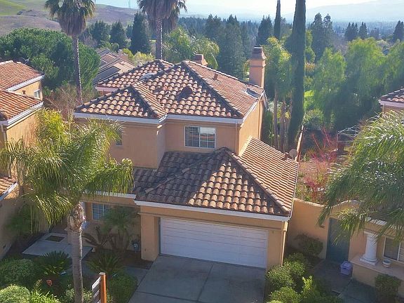 Amazing three bedroom, two bath home located in the Echo Ridge community of the Canyon View neighborhood! Very private and sits inside a gated community, this home has a beautiful tiled courtyard, and upon entering the home, you will immediately notice the high ceilings and large windows from floor to ceiling, letting in lots of natural light. Features crown molding throughout, new carpet, a cozy fireplace in the living room, stunning marble flooring, and one bedroom on the main level. All baths have been wonderfully updated, and the kitchen has been upgraded with granite countertops. The primary bedroom features a lovely fireplace, and a spacious bath with a soaker tub. The serene backyard is perfect for family gatherings or quiet evenings at home, and offers breathtaking views of the San Ramon and Pleasanton hills. Just minutes away from shopping and restaurants at The Lot City Center, freeway access, parks, and trails, and located within an award winning school district. Your dream home awaits!