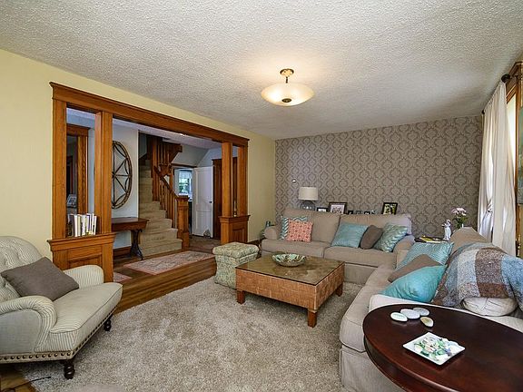 This house has so much to offer inside and out. First floor has the formal dining room with bay window, living room, all natural woodworking, high ceilings with hardwood floors, first floor den and half bath. The kitchen is the gathering point around the new center island with a marble counter overlooking the roof top deck perfect for all the summer entertaining. You can capture some amazing sunsets too! Four bedrooms on the second floor with hardwood floors, a bonus home office room and a brand new bathroom featuring custom tile work. Spacious walk-up attic. Roof approx. 4 yrs. old and new rubber roof over garage. The basement is finished with a ceramic tile floor heated by a pellet stove. Long driveway, large fenced in yard for more fun this summer. Beautiful landscaping and close to all amenities.