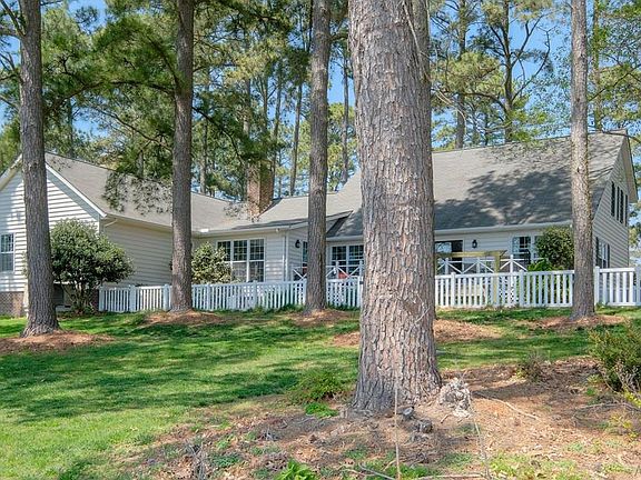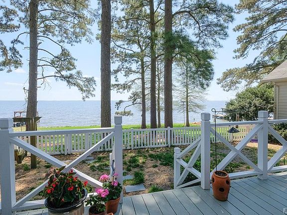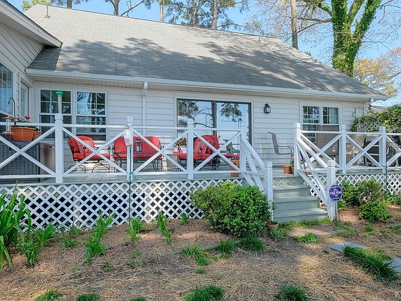 Beautiful sunsets and great waterfront living are offered by this Albemarle Sound front home located about 6 miles from Historic Edenton. This unique home offers four bedrooms. three full baths, a primary bedroom with en suite full bath and sitting room; newly installed three windows in the bedroom and four windows in the sitting room. A separate laundry room complete with new washer, dryer and full-size refrigerator with ice maker (that provides two separate sizes of ice. The home features an office and four bedrooms with a huge unfinished area over the two car garage and primary bedroom. In addition, the sunroom opens on to a comfortable shaded deck with a partially fenced in yard that is great for pets. The Country Club Drive area of Chowan County is a mature neighborhood only minutes from the golf course is at sThe Links at Mulberry Hill. A boating & golfing property.