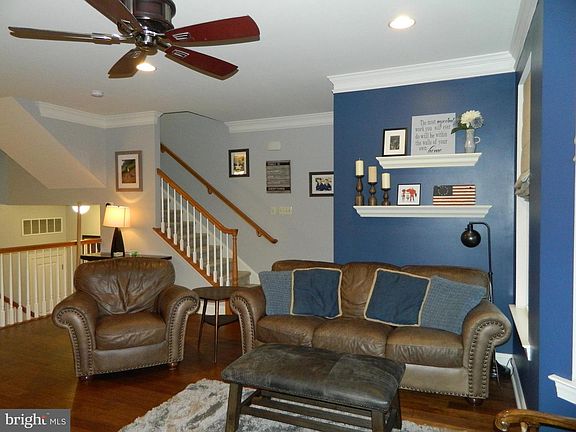 Welcome home to this Gorgeous open and airy end townhome in the Villages at Country View. Rarely offered 3 story end unit with 3 story bump out is upgraded throughout! Enter into the foyer entrance with hardwood floors. With an open floor plan the living room boasts 9' ceilings, crown molding, hand scraped hardwood floors, recessed light and 3 sided fireplace, formal dining room with hardwood floors. The gourmet kitchen offers an island, granite countertops, custom ceramic tile backsplash, 42' upgraded cabinets, recessed lighting, stainless steel appliances and custom, breakfast area and custom ceramic tile floor. From the kitchen Enjoy relaxing in the sunroom abundant with natural light and sliding glass doors to the private 10' x 12' Trex deck. Beautiful spacious master bedroom suite with cathedral ceiling, plush w/w carpets, upgraded master bath with new shower doors and custom vanities and sitting room addition with cathedral ceiling. The 2nd and 3rd bedroom offer wall to wall carpets, ceiling fans and double closets. There is a second upgraded full bath with custom vanity and ceramic tile and a convenient 2nd floor laundry room. The lower levels has finished rec room, flex room with sliding glass doors to paver patio, powder room, large walk in closet. This home offers 2 car garage, private driveway and ample guest parking. The community offers walking trails, playgrounds, close proximity to restaurants and shopping. Amenities include 3 story bump out, hand scraped hardwood floors, 3 sided gas fireplace, custom ceramic tile floors in kitchen and sunroom, extra powder room in basement, upgraded kitchen cabinets, upgraded 2nd floor tiled hall bath with vanity, upgraded master bedroom suite with cathedral ceiling, sitting room and upgraded master bath with custom cabinets and shower doors.