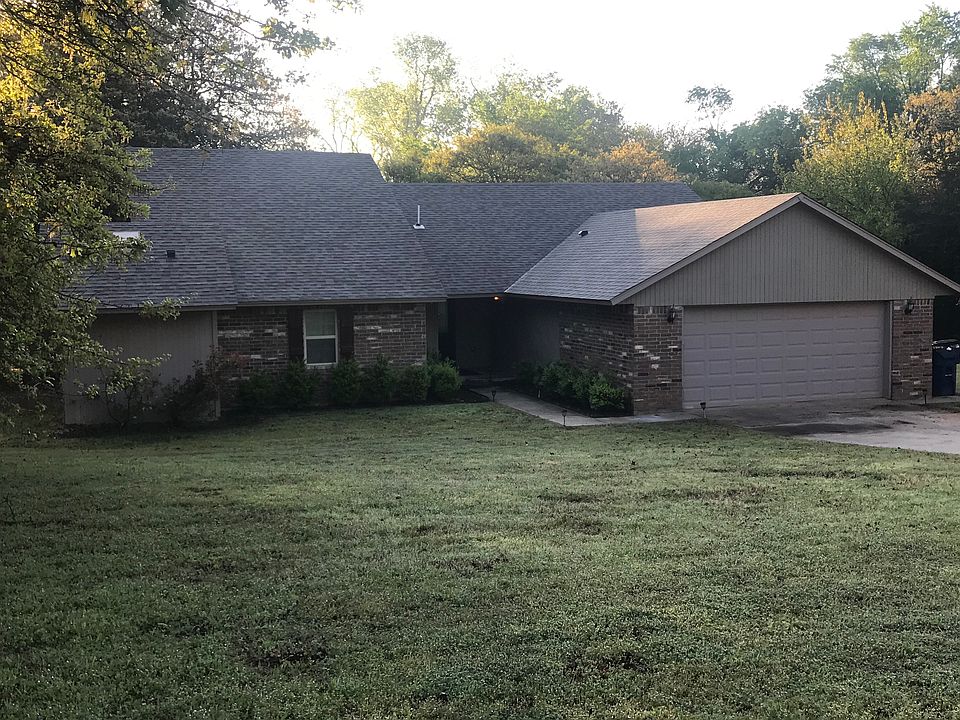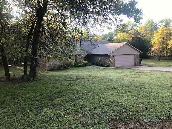 Beautiful 3 bed/2 bath home w/ a lot of mature trees sits on a large 1 acre corner lot - 15 mins from Tinker Air Force Base. Home was completely renovated in 2015. Masterbed has 2 walk in closets, double vanity, granite counter top, shower/tub combo AND an extra large stand in shower. Kitchen has granite countertops, lots of cabinet space, and a small breakfast bar. 2 dining areas. Large living room has vaulted ceilings, wood burning fireplace, and a large built in entertainment center. 2 extra bedrooms have lots of closet space! Large fenced in backyard. Property line goes past the fence to the creek. New in 2015: roof, electrical wiring, cat 5 wiring, HVAC system, paint, flooring, ceiling fans, lights, granite countertops.