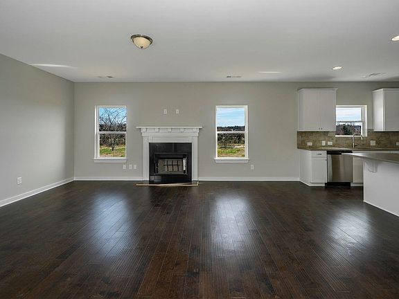 Oakmont "D" sitting on an unfinished basement. The kitchen features 42" white cabinets, tile backsplash, hardwoods, double oven, gas cook top, stainless steel appliances, granite counter tops and an Island with pendent lights. Family room with hardwoods, gas starter, brick fireplace, and a ceiling fan. Owners suite with sitting room, ceiling fan, trey ceiling and an Owners bath, featuring tile Mega shower, double sink vanity, and a walk in closet. 2 secondary bedrooms with walk in closets, carpet. Hallway full bath for secondary bedrooms.