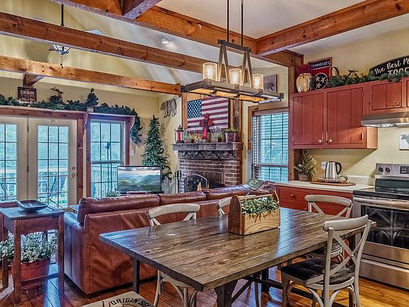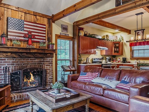 Wow! This one is special. 1 bed/2 bath cabin with BONUS ROOM suite in a coveted golf course cabin community! This 1744 sqft beauty will blow you away. From the moment you step inside, you will be greeted with warm, open living space. In the main living area, you will find a large beautiful wood burning fireplace and comfortable seating for all of your guests. Step over into the kitchen/dining area to find a dining table that could seat up to 6 people, along with stainless steel appliances and ample counter space for entertaining. The main floor suite bedroom contains a gorgeous wooden queen sized bed, access to the main full bathroom, and a SHOW-STOPPING jet tub with tall surrounding windows to showcase the views. Speaking of views, did I mention there is a year-round MOUNTAIN VIEW off the back deck? The mountains are visible all year long from the living room windows and the back deck and gets even better in the Fall/Winter time without all the leaves on the trees. The deck also features a very nice smoker style grill and a table with seating. Head downstairs to the bonus suite, featuring another beautiful wooden queen-sized bed, full bathroom, and a second living area with comfy seating and TV. This room also features a walk-in closet, miniature kitchenette and extra owner's closet. The bottom floor bonus suite is conveniently accessible through a separate outdoor entrance, creating two private guest spaces. You won't find another cabin like this one! All information deemed reliable, buyer to verify.