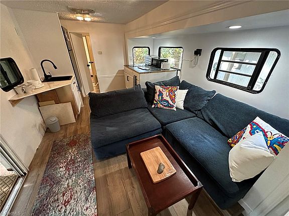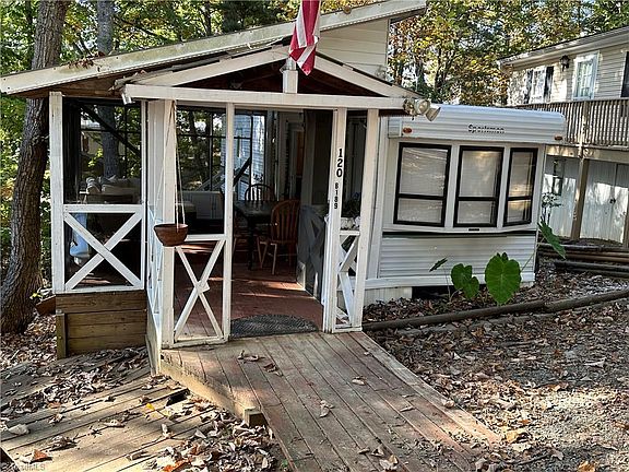 Nestled within the exclusive waterfront community of Badin Shores Resort, this fully furnished 2-bedroom, 1-bathroom destination camper is a wonderful escape. Located on a deeded lot at the end of a cul-de-sac, it offers privacy and relaxation. The property features a covered porch for outdoor enjoyment and a convenient storage building. Badin Shores Resort provides an array of amenities, including a refreshing swimming pool (opened seasonally), a scenic waterfront boardwalk, basketball courts, a clubhouse, putt-putt golf, horseshoe pits, a fishing pier,(currently being rebuilt), a stocked fishing pond, boat ramp and inviting playgrounds. Embrace the resort lifestyle, create lasting memories, and savor the countless recreational opportunities that come with this charming lakeside retreat.