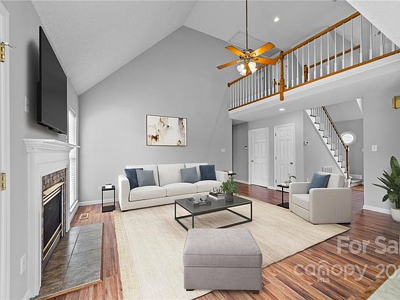 NEW PRICE! ** NEW Moisture Vapor Barrier and a clear pest inspection! Situated in the quiet Cul de Sac on .34 acre. You will not be "jammed in" here on this wide pie shaped lot, giving space and privacy between homes. New Professionally FRESHLY PAINTED throughout! Large spacious OPEN FLOOR PLAN with an impressive TWO STORY GREAT ROOM featuring a GAS LOG FIREPLACE. There is both a Formal Dining room/ OFFICE and an additional dining area adjacent the kitchen. The primary bedroom suite is on the main level. The primary bath includes a garden tub, separate shower, & double sinks. The additional bedrooms are upstairs. The second bath has double sinks & a door separating the tub/shower & toilet. Brand NEW white double car garage door. Newer water heater. HVAC 2019. Roof 2016. New Paint. Very Low $60 annual HOA. Lovely neighborhood is Close & Convenient to everything: Restaurants, Shopping, schools, Lake Norman activities, Hwy 150, Hwy 3, and I -77, etc.