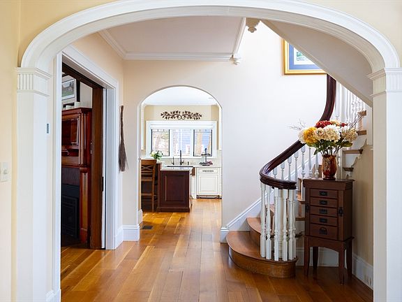 In Newton Highlands around the corner from Eliot T station, this extensively renovated 1880s home is a half mile or less to the village & Cold Spring Park. It seamlessly blends gorgeous original detail with the best of modern amenities, including central AC. The covered front porch welcomes you into the foyer with a charming sitting area. Pocket doors lead to the spacious living room and bespoke dining room with a gas fireplace. At the back of the home is the amazing kitchen with high-end appliances, an island with a breakfast bar and access to the mudroom addition with doors to the powder room & yard. The level yard offers a kitchen garden, mature perennials, plenty of space to play & a patio for entertaining. On the 2nd level is the enviable primary suite with an outfitted dressing room & spa-like bath with heated floors and a steam shower. There are two more bedroom suites on this level along with the laundry. The 3rd level has two more large bedrooms and the 4th full bathroom.