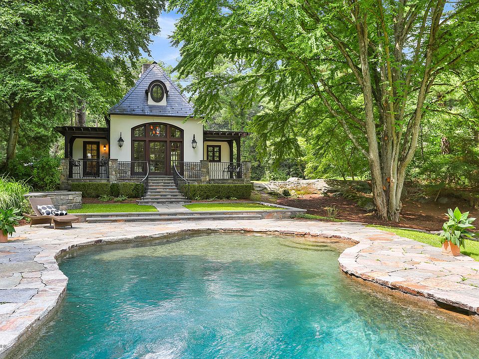 Beautiful home great for entertaining with 2 lush acres, pool, spa, pool house, and large terraces. Corner lot near Stanwich Road provides privacy and serene country setting, while conveniently located just over 10 mins to shopping and train Built in 1954, this unique 4,475 sq ft home boasts an updated kitchen and master bath (2020), 3 fireplaces, formal dining room, large living room, bright sunroom / library, large bedrooms and spacious master suite with walk in closet, office or sitting room. Beautiful woodwork, architectural details, bright windows and ample space make this expansive property a lovely home Designed by Douglas Vanderhorn, stunning pool house will be enjoyed year round. Features cathedral ceiling, fireplace, heat, a/c, small kitchen and full bath - pool house, guest