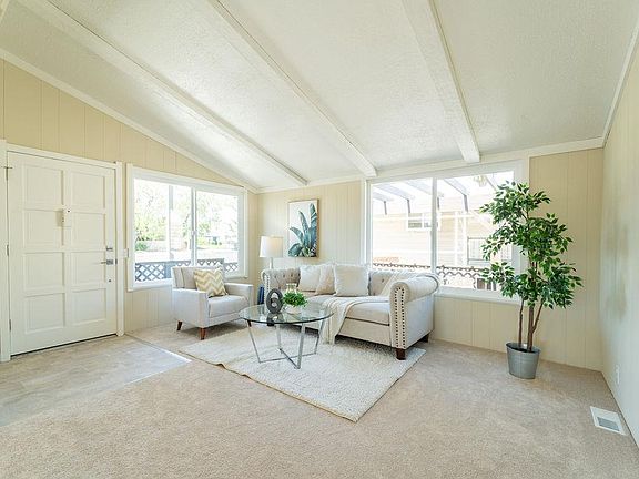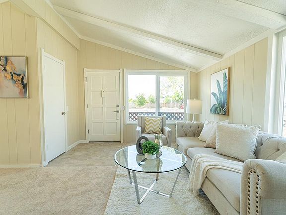 DELIGHTFUL DOUBLE WIDE MOBILE HOME LOCATED IN FRIENDLY VILLAGE MOBILE HOME ESTATES* THIS HOME FEATURES NEW INTERIOR PAINT, NEW CARPET/PAD, NEW LINOLEUM, UPDATED KITCHEN WITH DESIGNER CABINETS, NEW CEILING LIGHTS* STAINLESS STEEL APPLIANCES, REFRIGERATOR INCLUDED, GAS RANGE/OVEN, QUARTZ COUNTERTOPS* FORMAL LIVING ROOM, SPACIOUS DINING AREA, NEW DOUBLE PANE WINDOWS* DECORATIVE CHANDELIER, NEW ELECTRIC SWITCH AND OUTLET COVERS, SPACIOUS PRIMARY BEDROOM, SLIDER TO DECK* TWO LARGE CLOSETS, ONE WITH MIRRORED DOORS, SECOND BEDOOM HAS BI-FOLD DOORS AND CAN BE USED AS OFFICE* BATHS WITH NEW QUARTZ VANITIES, NEW MIRRORS, LIGHT & WATER FIXTURES* LARGE CARPORT, NEW MAILBOX, ADDITIONAL GUEST PARKING, WELL MAINTAINED COMMUNITY* MATURE TREES & BUSHES, TWO REFURBISHED DECKS, NEW EXTERIOR PAINT, DECORATIVE ROCK* SPACE RENT IS $688 PER MONTH INCLUDES COMMUNITY POOL, CLUBHOUSE, LAUNDRY FACILITY,* CLOSE TO PARKS, SHOPPING, TOP RATED SCHOOLS, AND EASY ACCESS TO FREEWAYS! MUST SEE! CURRENT RENT $702 - SEWER $42.21 - TRASH $18.83 TOTALING $763.04
