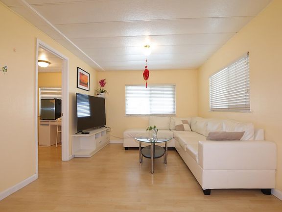 Discover this stunning home located in the Friendly Village community. Low Space Rent. Spanning approximately 960 square feet, it features three bedrooms and two bathrooms. The living and dining area has ceiling lights and laminate flooring. The kitchen is equipped with granite countertops, a refrigerator, a dishwasher, a gas stove and oven, a garbage disposal, and also has laminate flooring. The master bedroom includes ceiling lights, a walk-in closet, and laminate flooring. The guest bedrooms are fitted with ceiling lights and laminate flooring as well. The master bathroom offers a shower with a sliding glass door and tile flooring, while the guest bathroom includes a tile backsplash, tile flooring, cabinets, and a tub with a shower. The backyard features a shed and a BBQ area, and the utility room has laminate flooring as well. Enjoy the benefits of double-pane windows, and the washer/dryer is included. This home is conveniently located near the 680/880 freeways and shopping centers. Come visit today!