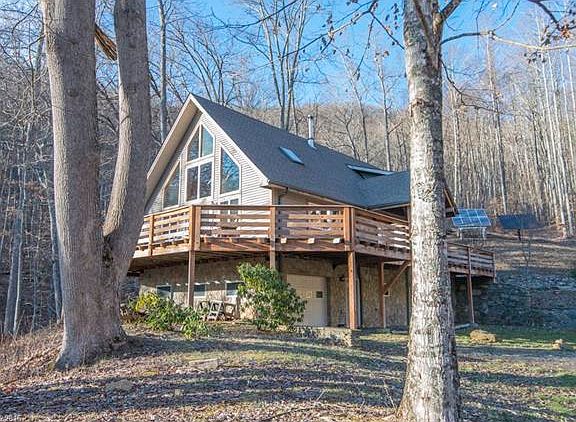 Are you looking for total peace, quiet and privacy? Does the idea of making your own power give you a charge? Does the thought of radiant heat warm your heart? If so then this is a MUST see. Truly a one of a kind estate situated on 5 private acres with mountain views and two streams! This OFF THE GRID HOME offers a quality of construction not seen in a typical home, too much to describe here, this truly is the PERFECT mountain getaway. Includes over $50k worth of solar power equipment!