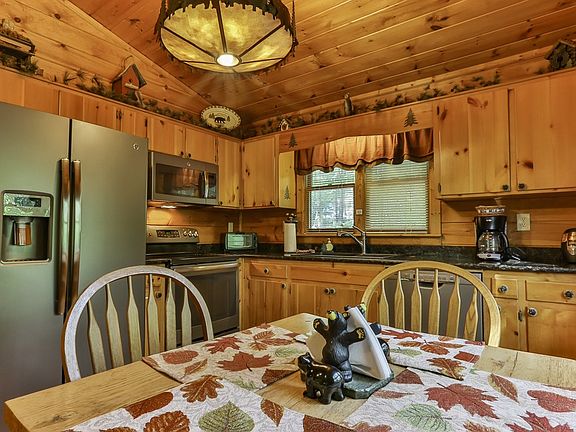 Charming & meticulously maintained Cherry Log Cabin! This 2/1 home offers a cozy great room with a vented, stone gas log fireplace, adjacent eat in kitchen w/stainless appliances & lots of natural light. 2 bedrooms share adjacent full bath w/ tub shower combo. Wrap around deck features a screened porch perfect for enjoying the outdoors! Soak in the hot tub while enjoying the stars on a crisp mountain night. End of the road privacy, mature landscaping, close proximity to the Benton McKaye trail, & community amenities that include stocked ponds. Sought after Cherry Log location between Ellijay and Blue Ridge. Offered fully furnished turn key & currently in a successful vacation rental program.
