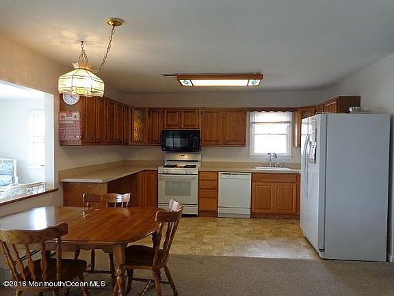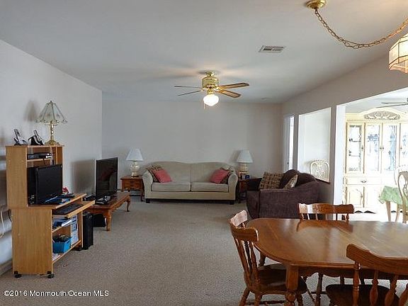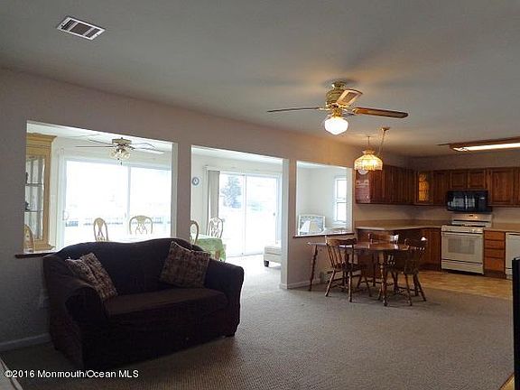 Talk about location! This property sits on the 3rd lagoon to the bay, directly across from the Barnegat Inlet and is located in Waretown with a Barnegat mailing address, which means substantially lower taxes! Open floor plan with front door opening to large bright living room flowing into the kitchen area. Beyond the living room and kitchen area is a large sun drenched room with double sliders leading to the backyard. Four bedrooms in total, all with ceiling fans and one with sliders for backyard access. Full bath plus bonus half bath in laundry room! Laundry room has door to outdoor shower. Maintenance-free backyard with 75 feet on the water and newer bulkhead!