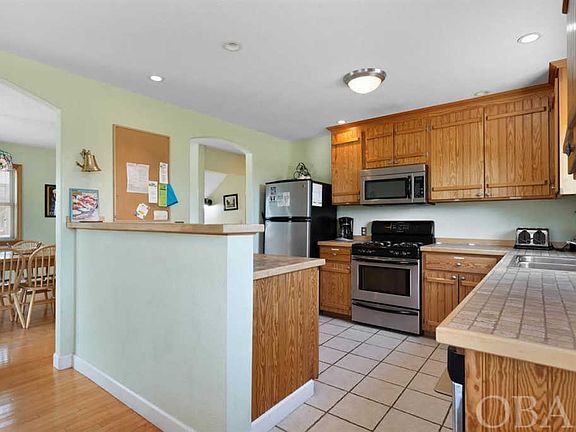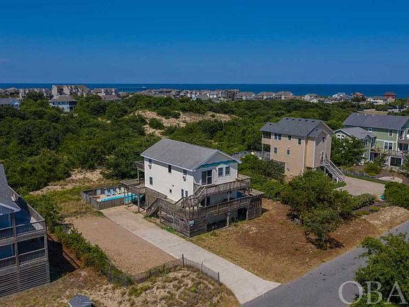 Charming 6-bedroom, 5 bath beach house with ocean and sound views. This property is well suited for a great family vacation- walking distance to the beach, lots of outdoor entertaining space, multiple bedroom configurations with 2 Master en suites, and a ground level rec room right off the pool area. The top level offers a natural beamed ceiling which brings to life that sought-after coastal feel. Lots of windows and north/south deck access provide natural light and highlight the open feel of the family room. A Master en suite and guest bedroom are on this level along with a full hall bath. Built-in benches on the deck outside offer convenient spots to soak up the sunshine and the views of the ocean or sound. The midlevel is the heart of this home with another Master en suite, another guest bedroom and hall bath as well as the kitchen and dining room. The kitchen has stainless appliances, two dishwashers, and a gas stove. Beautiful natural wood cabinetry, tile counters, and a breakfast bar are also featured. More windows and deck access are found in the large dining area. Hardwood floors run through this main area, tying into the warmth of the natural wood trim around the windows and doors and reflecting back to the kitchen for an all-around natural feel. The ground level boasts ceramic tile floors, two additional bedrooms and a hall bath and the rec room. The large rec room leads directly out to the spacious pool and hot tub area. Plenty of room to soak up the sun around the 13â x 29â pool or take a dip in the hot tub. This property is not only a short walk to the beach, but also within walking distance to the Town of Duck with great restaurants, shopping, community events, and the Boardwalk and multi-use path. This is a vacation gem in a desirable location but add in the views of sound and sea from the property, and you have yourself a real Diamond!