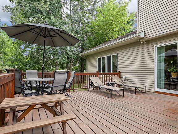 Welcome home to this beautiful modified two story with 3 bedrooms on one level. Great hardwood flooring, new tile backsplash in the kitchen. Updated appliances, main floor laundry and office. Private master suite with full bathroom and large walk in closet. Fully finished basement. Oversized & fully finished heated garage. Speaker system throughout. Meticulous landscaping with paver patio, large deck and firepit area wonderful for family & neighborhood entertainment. Truly a gem!